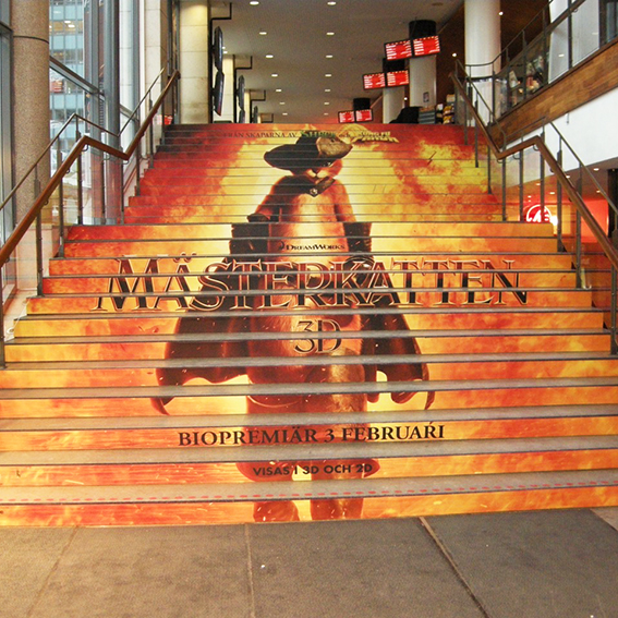 Med olika folieringar kan man skapa budskap på alla tänkbara ytor - såväl på väggar, golv och i trappor. Man kan anpassa ytorna efter platsens egna former och mått, vilket skapar möjligheter för extra uttrycksfulla och starka exponeringar. Möjligheterna är oändliga.