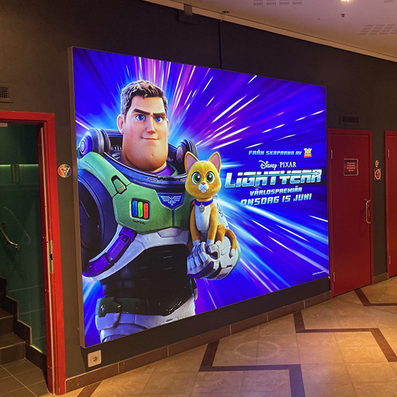 Se fler exempelUnder de senaste åren har stora bakbelysta ljuslådor kommit att bli biograffoajéernas kanske viktigaste reklamytor. Med sin skärpa och ljusintensitet drar de alltid till sig stor uppmärksamhet, samtidigt som de ger en stadig plats för olika filmbudskap.